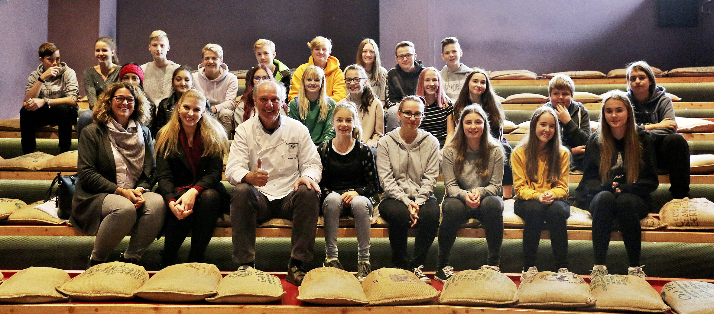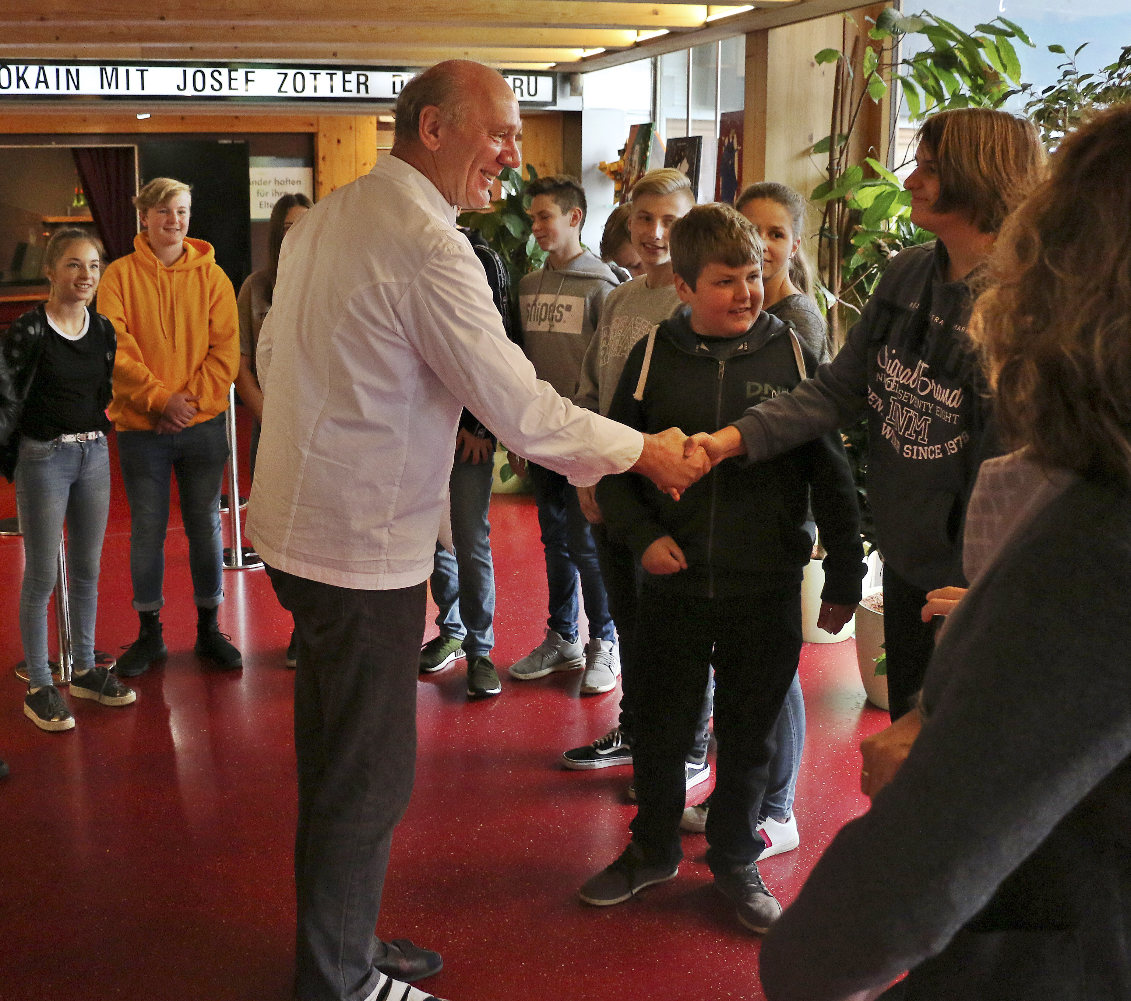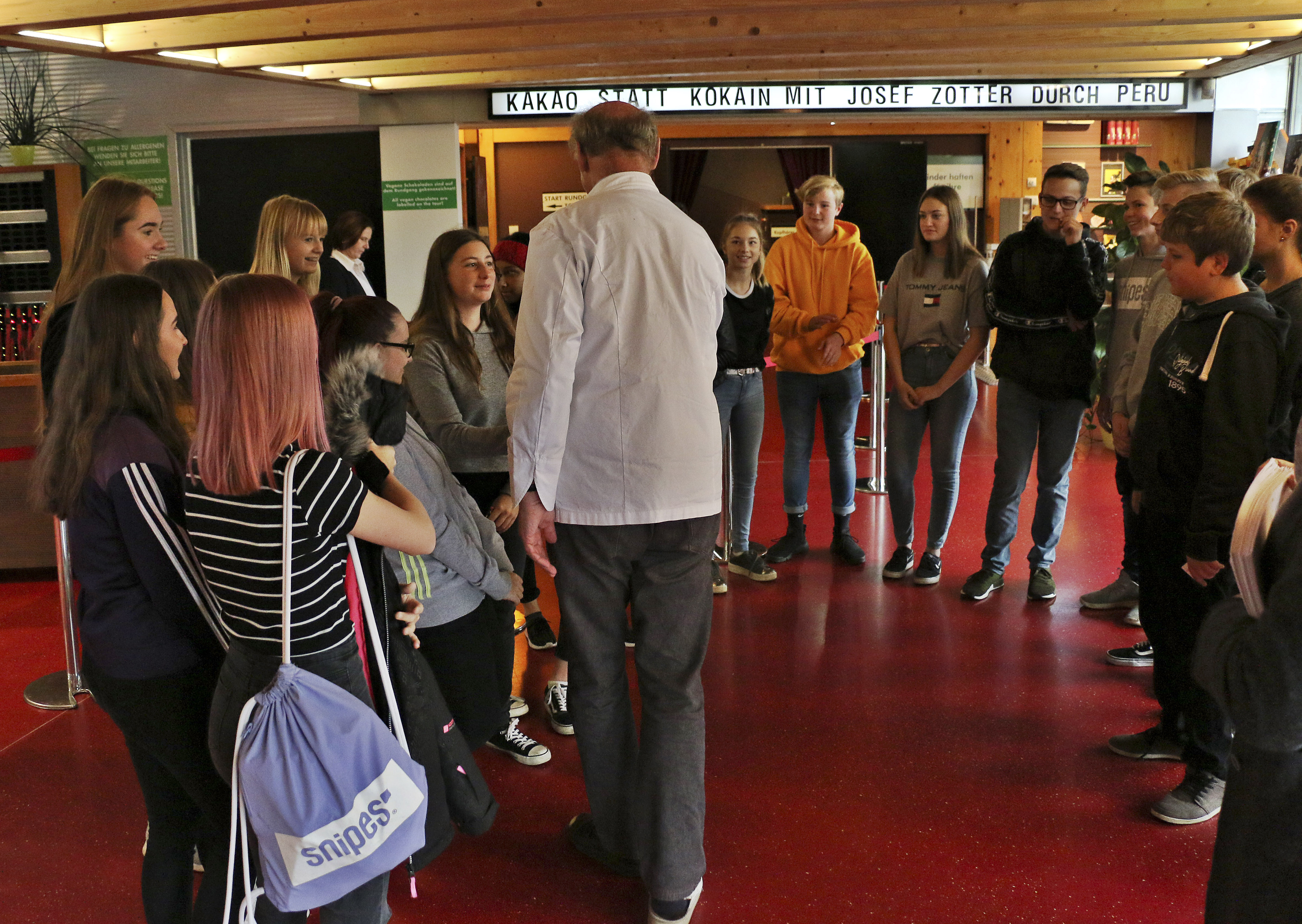 Eine große Ehre für die SchülerInnen der PTSDF: Am 13.11. trafen Sie Josef Zotter auf ein geplantes, ganz persönliches Gespräch. Er nahm sich mehr als 30min Zeit, um von seiner Firma und vor allem von seinen mehr als 200 MitarbeiterInnen zu erzählen, die für ihn die besten der Welt sind. Vor allem für die SchülerInnen aus dem Fachbereich Handel/Büro war es eine besondere Ehre – gibt es doch mit Zotter seit Jahren eine enge Kooperation mit den Übungsfirmen.