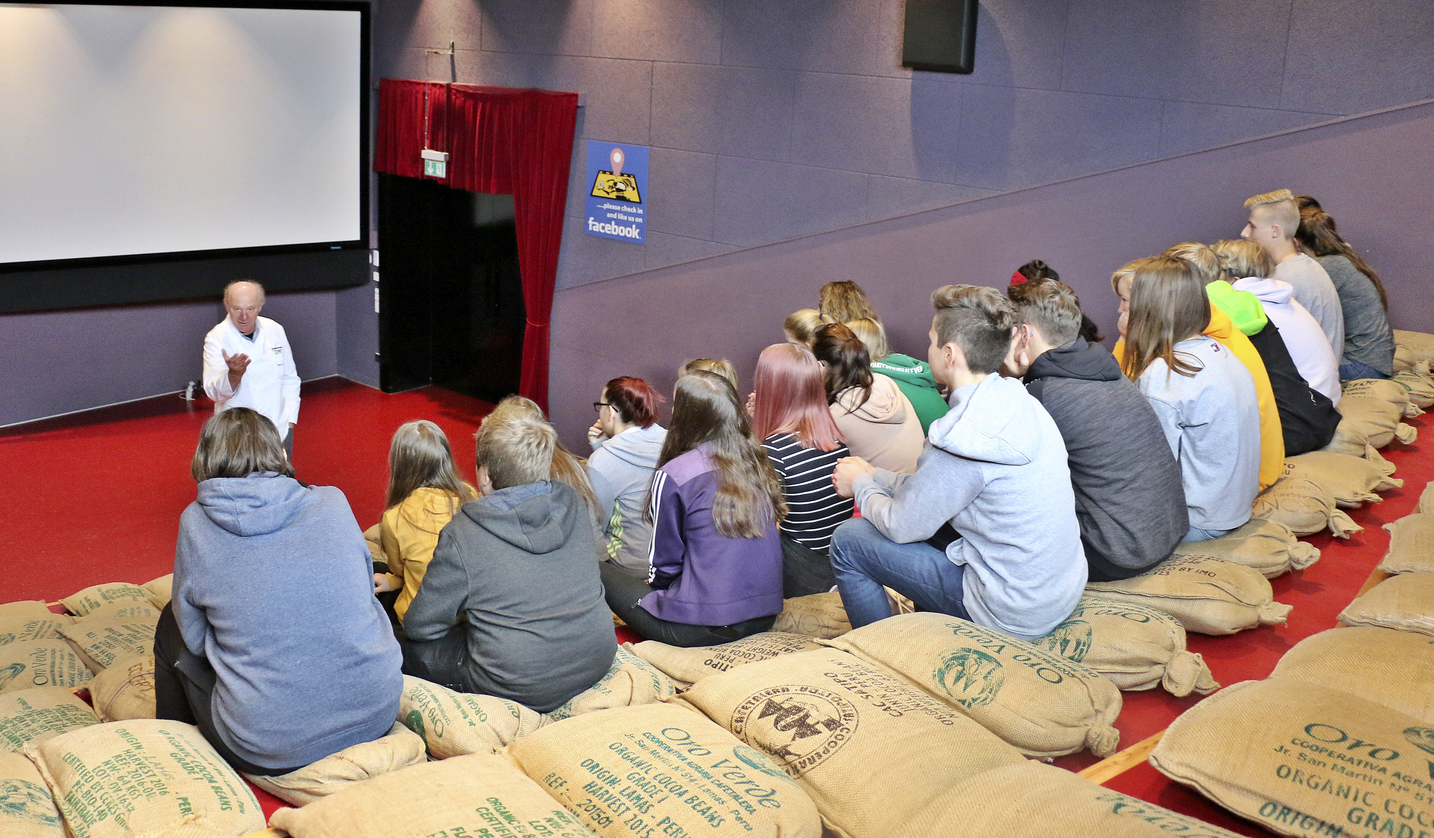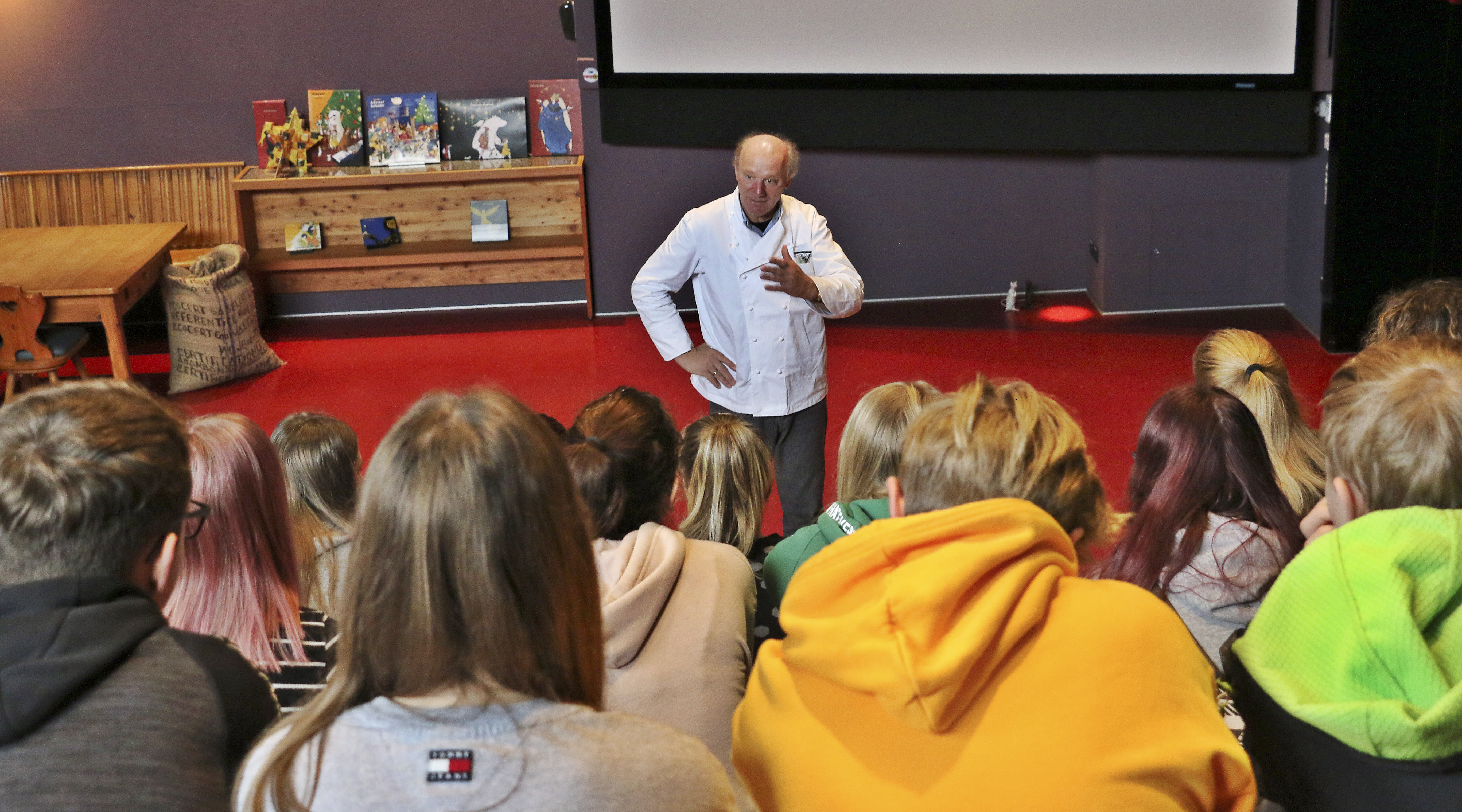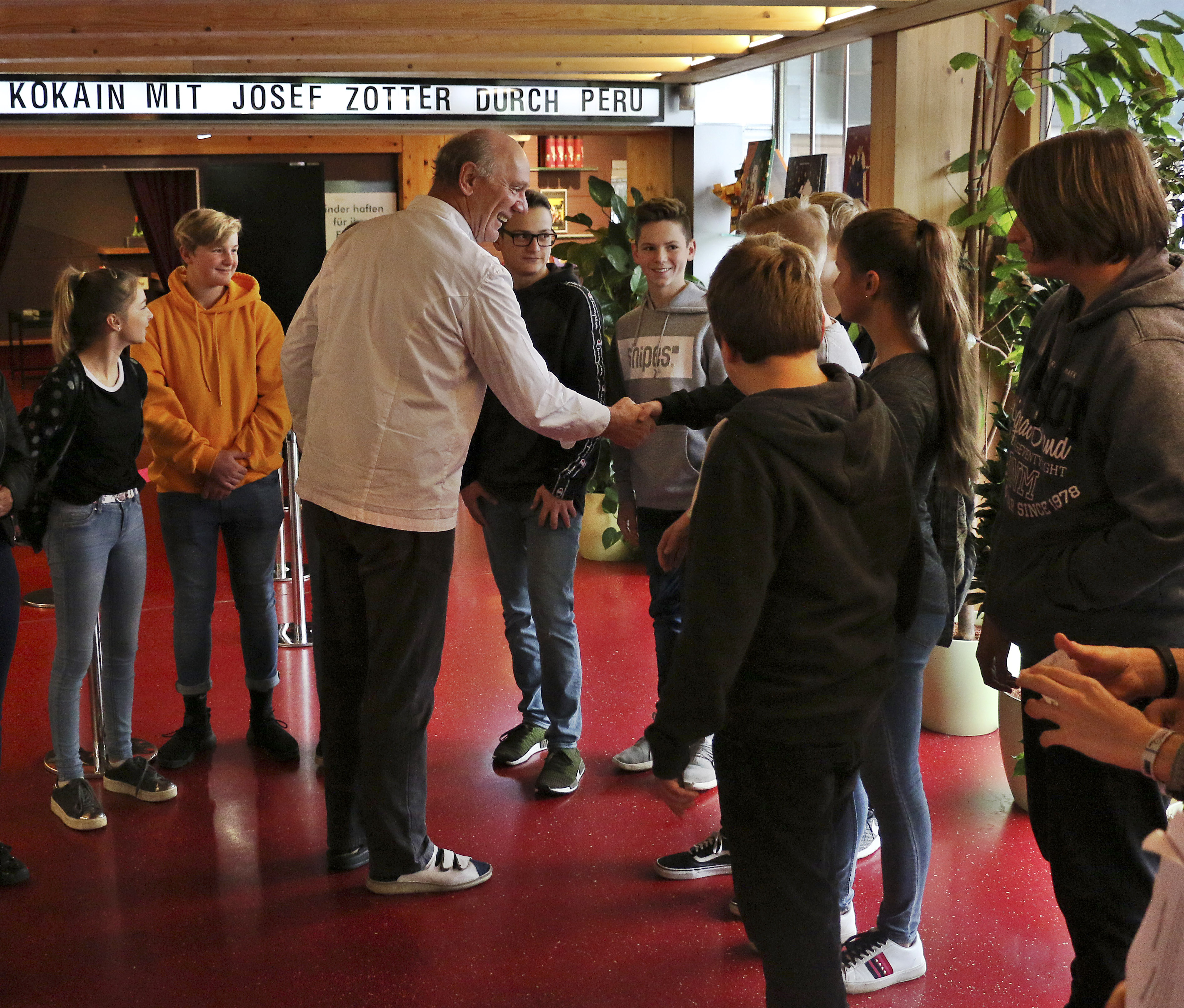 Eine große Ehre für die SchülerInnen der PTSDF: Am 13.11. trafen Sie Josef Zotter auf ein geplantes, ganz persönliches Gespräch. Er nahm sich mehr als 30min Zeit, um von seiner Firma und vor allem von seinen mehr als 200 MitarbeiterInnen zu erzählen, die für ihn die besten der Welt sind. Vor allem für die SchülerInnen aus dem Fachbereich Handel/Büro war es eine besondere Ehre – gibt es doch mit Zotter seit Jahren eine enge Kooperation mit den Übungsfirmen.