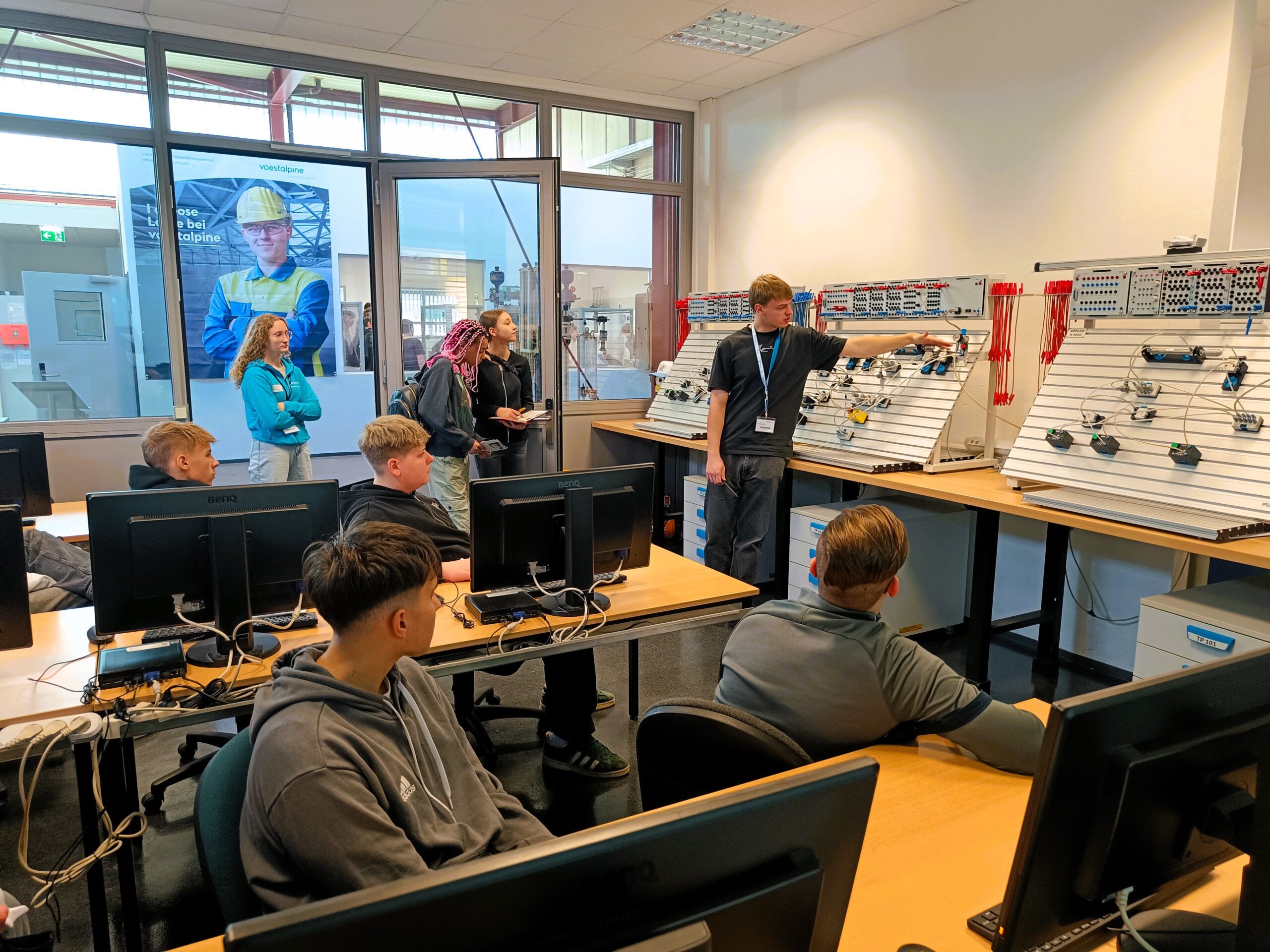 Am 23.1. 2025 lernten die Techniker der Fachbereiche Holz/Bau, Metall und Elektro den Weltkonzern Böhler in Kapfenberg kennen. Die Schüler: innen hatten die Möglichkeit einen sehr umfassenden Einblick in die 12 Lehrberufe, die der Betrieb ausbildet, zu gewinnen. Lehrlinge führten die Gruppen durch das Ausbildungszentrum, wo uns bei den einzelnen Stationen CNC-Drehen und Fräsen, Pneumatik, Hydraulik, die E-Werkstätte, Robotik, Werkstoffprüfung, IT –Support und vieles mehr gezeigt wurde. Ein Highlight war der Schweißsimulator, an dem sich die Schüler: innen beweisen konnten. Zum Abschluss durften alle Schüler: innen ein Gulasch und ein Getränk in der Kantine genießen. Voestalpine Böhler produziert Edelstahl höchster Qualität und benötigt dafür sehr gut ausgebildete Fachkräfte. Für junge Menschen, die einen zukunftssicheren Beruf in der Technik suchen, bietet der Konzern eine Vielzahl an Möglichkeiten!