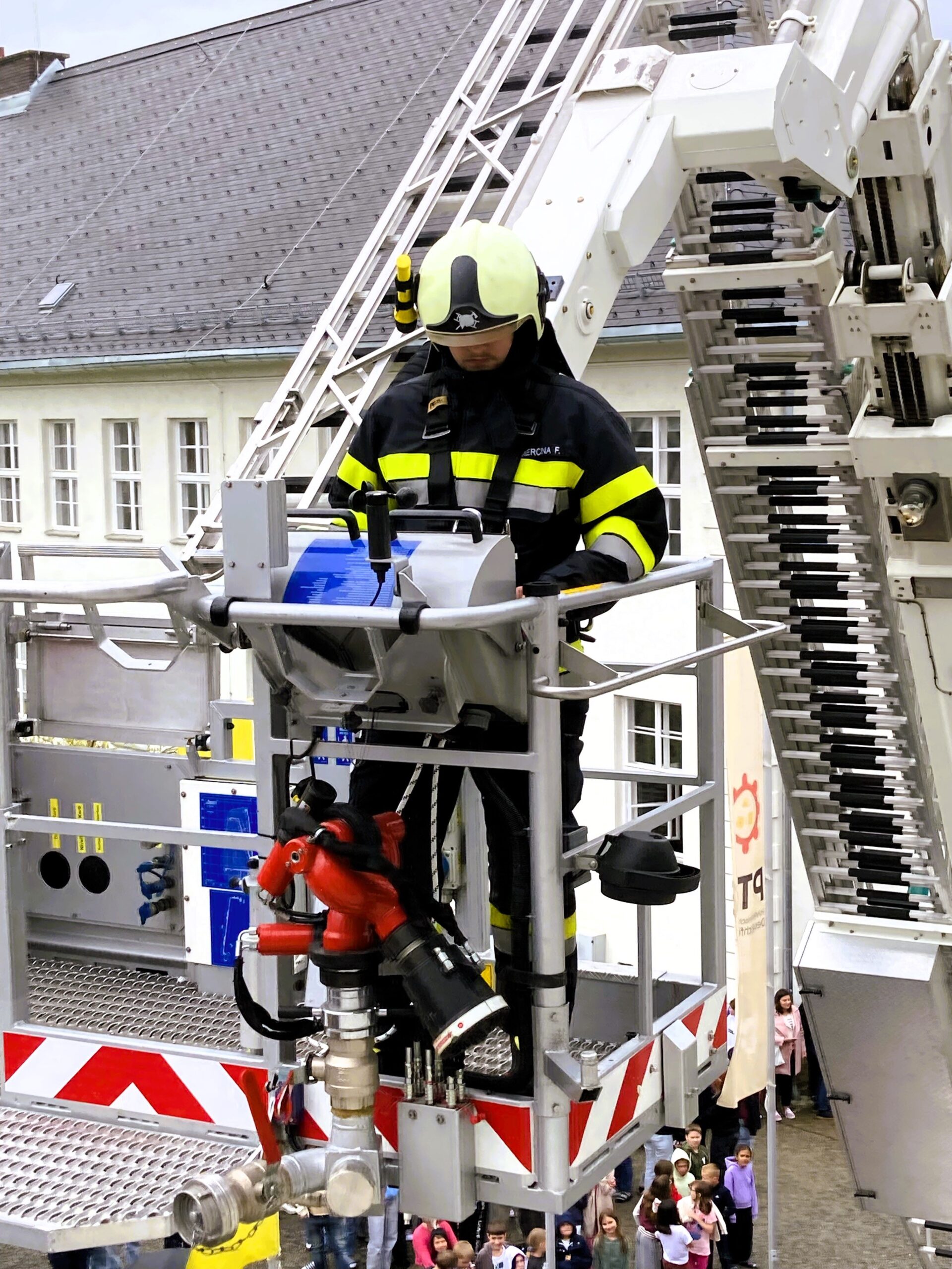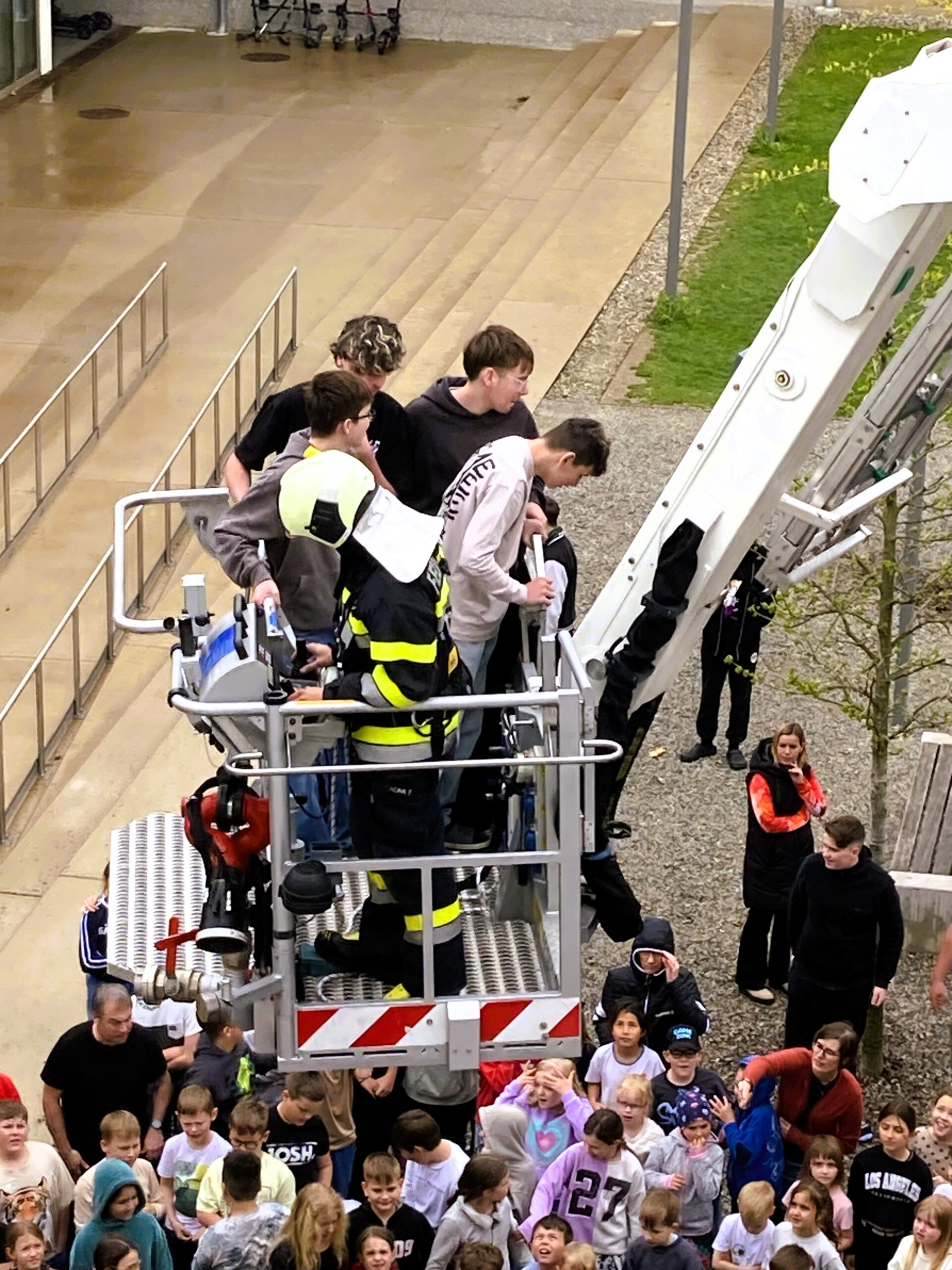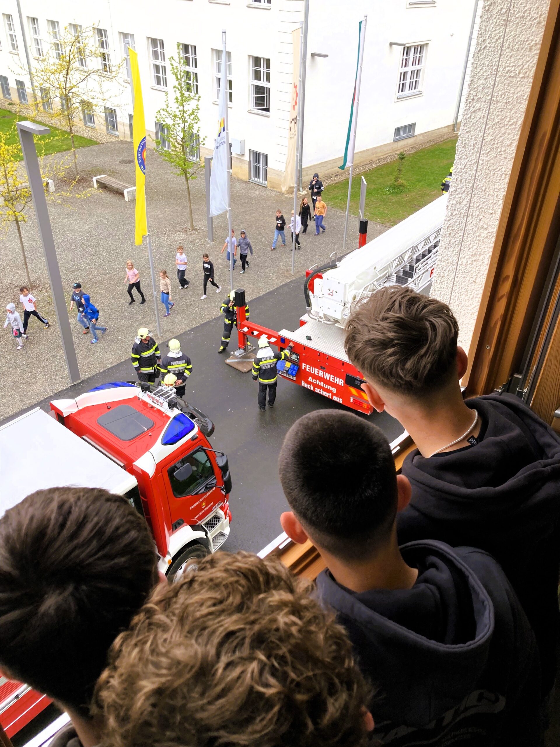 Die P3-Klasse der PTS konnte aufgrund der Rauchausbreitung nur mithilfe eines Rettungskorbes über die Fenster evakuiert werden.