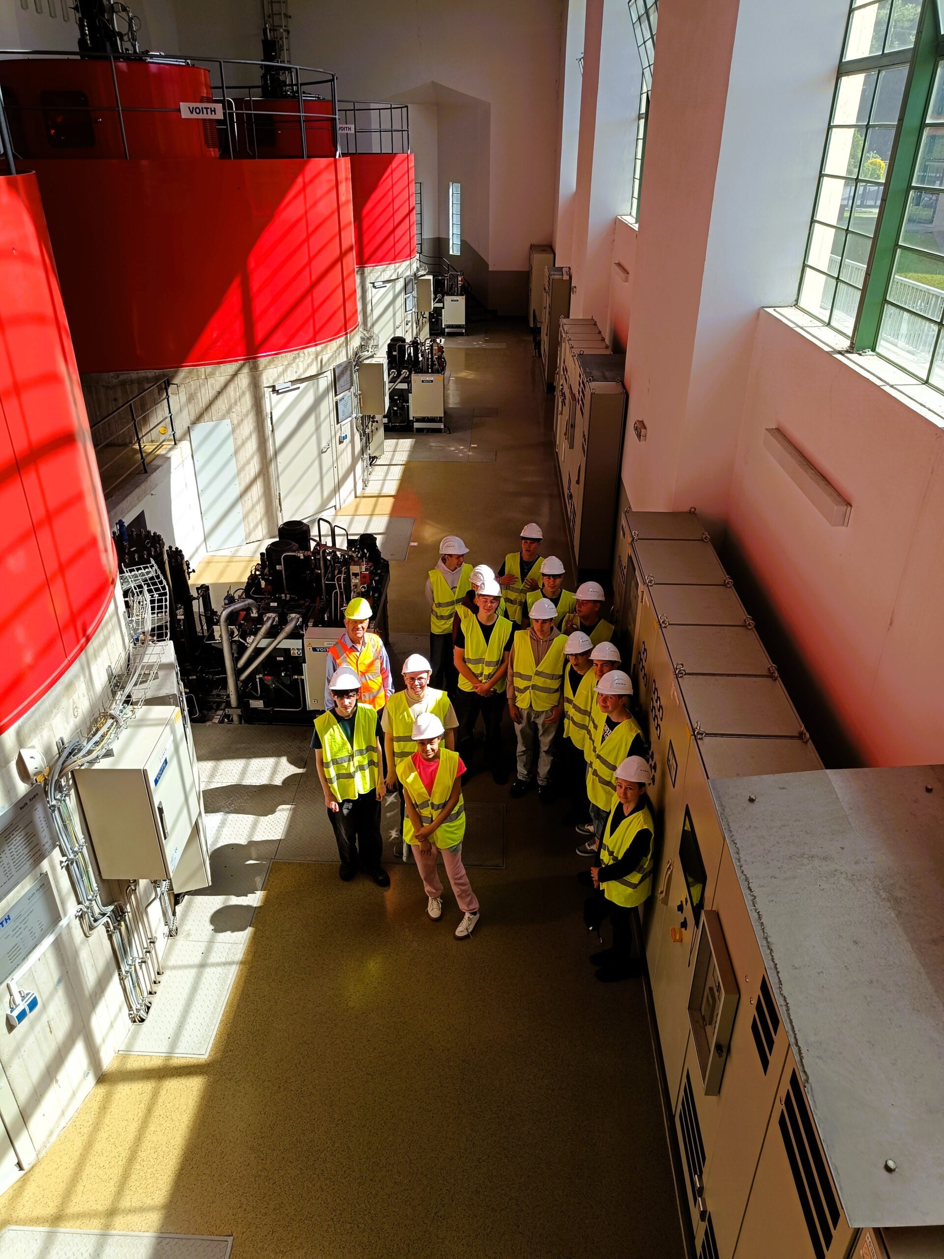 Die Stromversorgung nimmt ihren Ausgang bei Kraftwerken. Ein Großteil der Österreichischen Kraftwerke sind Wasserkraftwerke. Die Elektrogruppe hatte die Möglichkeit das Laufkraftwerk in Pernegg / Mur, das von der Firma Verbund betrieben wird, zu besichtigen. Seit mehr als 100 Jahren wird die Kraft der Mur zur Stromerzeugung genutzt. Wir erfuhren, dass das Wasser eine Turbine antreibt, die über eine Welle mit dem Generator verbunden ist. So wird Bewegungsenergie in elektrische Energie umgewandelt. Der erzeugte Strom wird über Hoch- und Höchstspannungsleitungen über weite Strecken transportiert. In einem Ausstellungsgebäude ist eine der originalen Maschinenbausätze als Schauturbine zu besichtigen. Derzeit werden in der Zentrale dort alle steirischen Kraftwerke vom Verbund überwacht, bald wird Pernegg die Hauptzentrale für ganz Österreich sein. Es werden noch Lehrlinge für den Doppelberuf Elektrotechnik und Metalltechnik gesucht, die Ausbildung erfolgt in der Lehrwerkstätte in Niederösterreich und in diversen Kraftwerken.