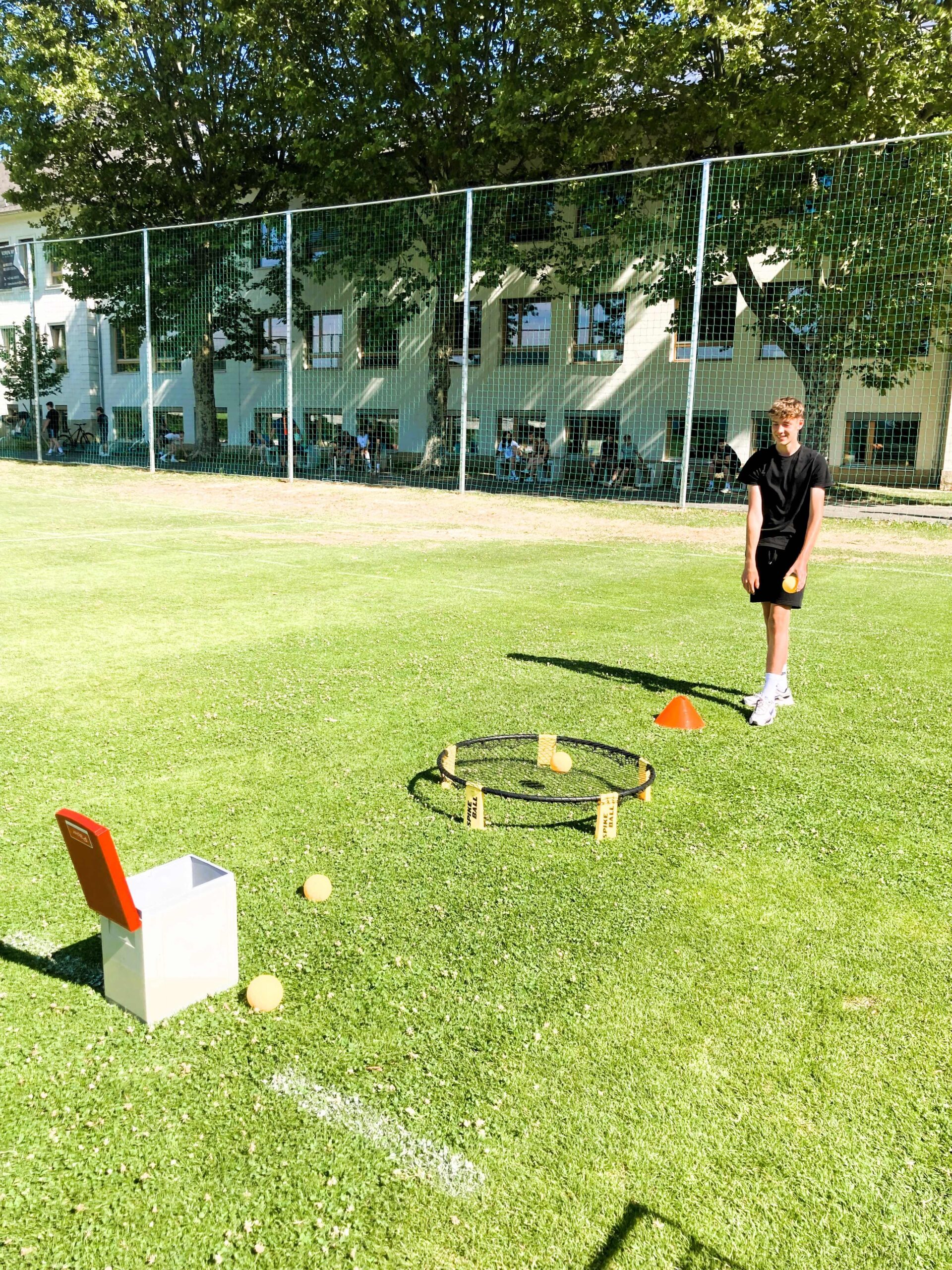 Bei sommerlichen Temperaturen bildeten alle Schüler:innen Gruppen, um sich am Sportplatz bei diversen Geschicklichkeitsspielen zu messen.