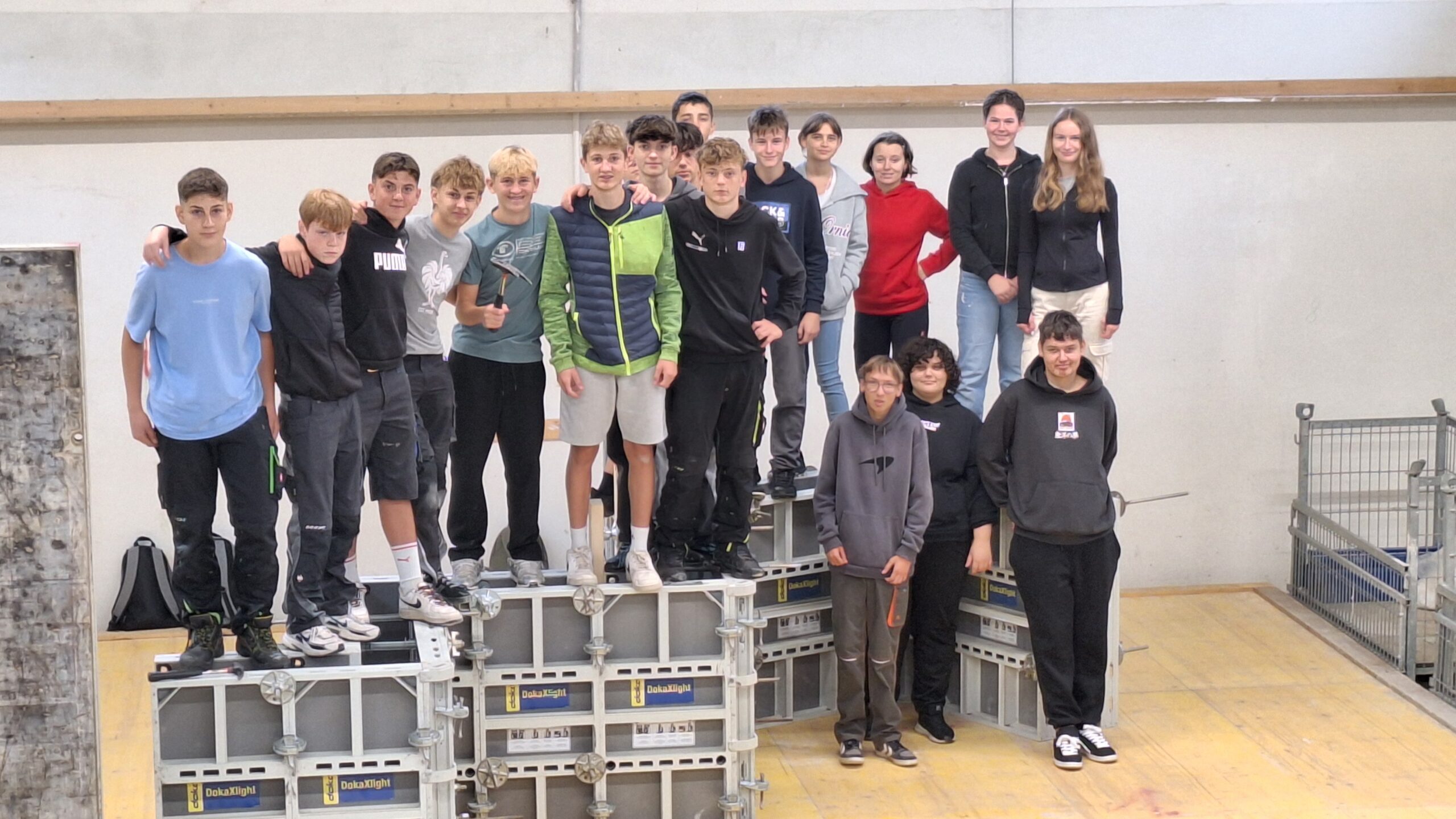 Nach einer informativen Einführung in die verschiedenen Ausbildungsberufe im Bereich Hoch- und Tiefbau durften die Jugendlichen selbst aktiv werden. Von der Planung bis zur Umsetzung wurden verschiedene Bauprojekte in Gruppenarbeit in Angriff genommen. Sofort stellten einige Schüler:innen ihr handwerkliches Geschick unter Beweis und ernteten viel Lob.