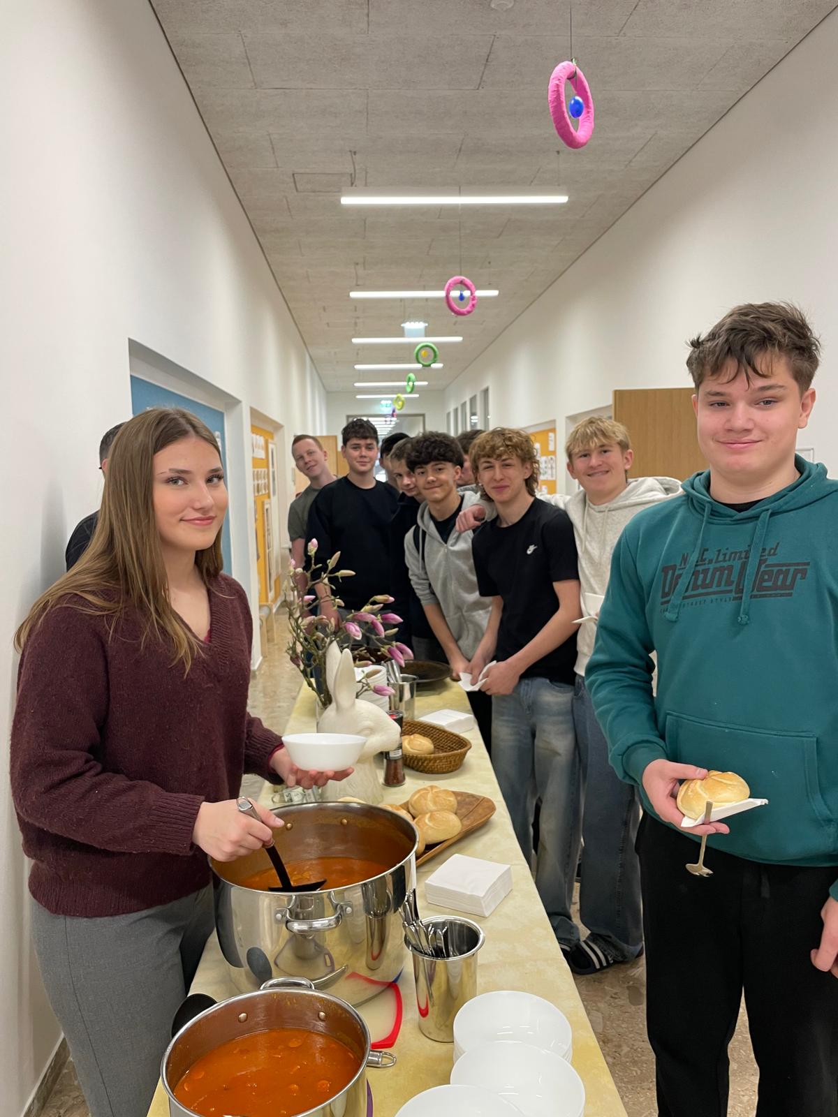 An der PTS Deutschfeistritz stand die große Pause kürzlich ganz im Zeichen von Genuss und Gemeinschaft. Auf vielfachen Wunsch unserer Schülerinnen und Schüler wurde für alle ein frisch gekochtes Erdäpfelgulasch angeboten – ein Highlight, das auf große Begeisterung stieß.
